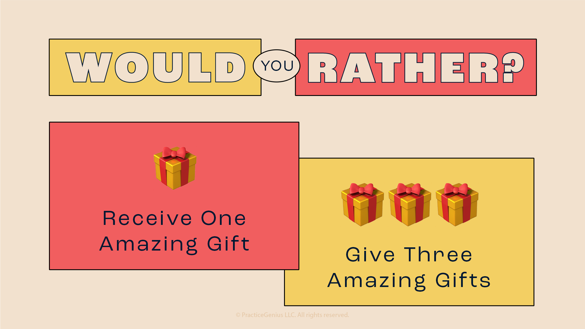 Would You Rather receive one amazing gift or give 3 amazing gifts?
